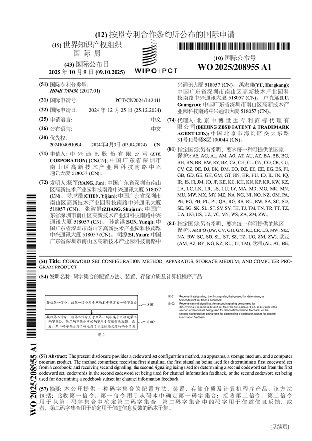 证券之星音讯,凭据企查查数据泄漏中兴通信(000063)公布了一项国外专利苦求,专利名为“码字齐集的设置轨范、安装、存储介质及缱绻机身手居品”,专利苦求号为PCT/CN2024/142441,国外公布日为2025年10月9日。