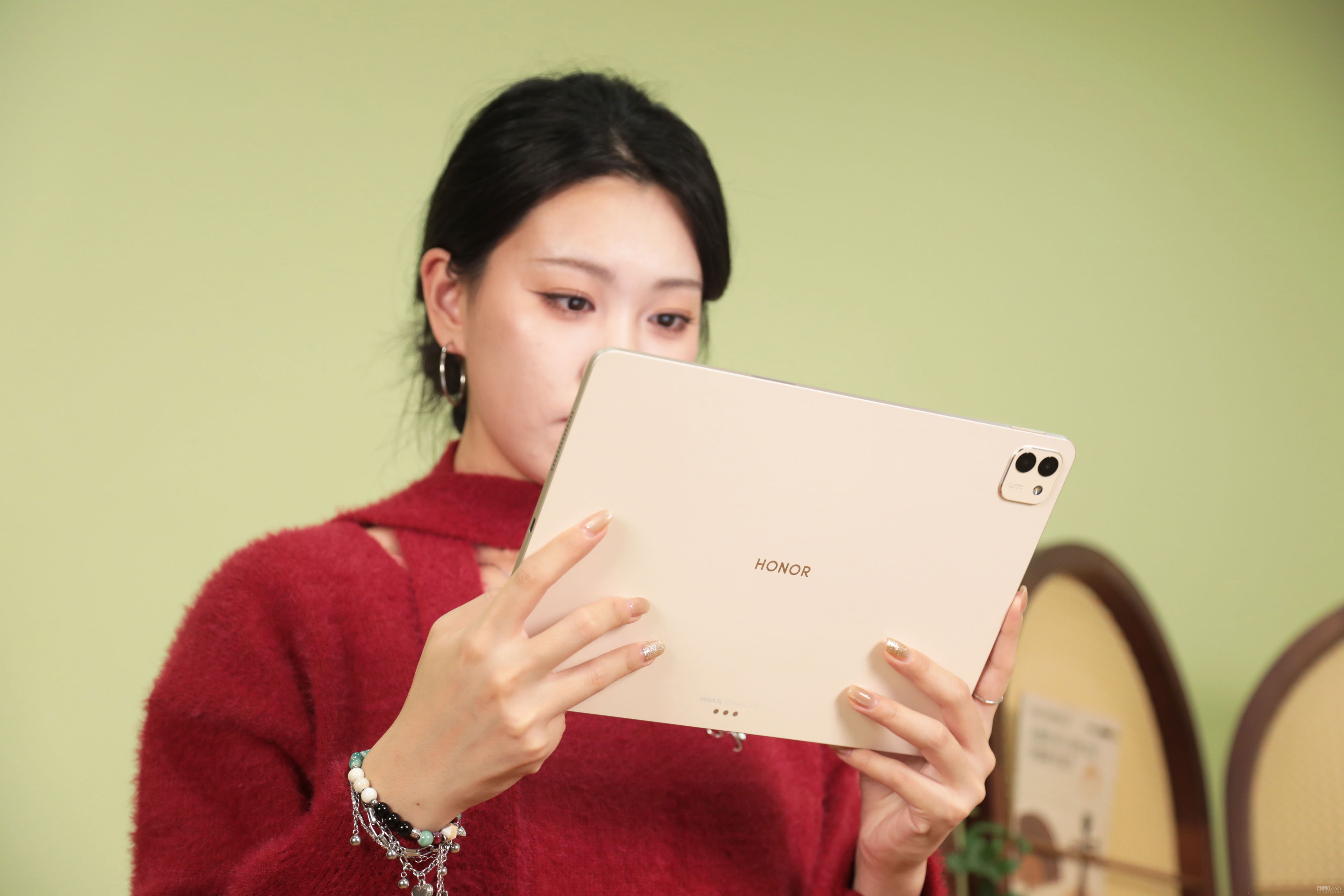 在外不雅缠绵上,荣耀MagicPad3 Pro与此前发布的荣耀MagicPad3有所秉承。保执了13.3英寸的尺寸、5.79mm的整机厚度、595g的机身分量,全体营造了浮滑的手感,荣耀MagicPad3 Pro的浮光金配色选择了全新的鎏光拓影工艺,这使金属背板呈现出了点点星光的嗅觉,摸上去亦然磨砂的质感,相较于传统金属机身的平板来看更有质感。虽然这种工艺加执下,所有这个词这个词背板的抗指纹才气超过强,裸机使用确切看不到任何的指纹。