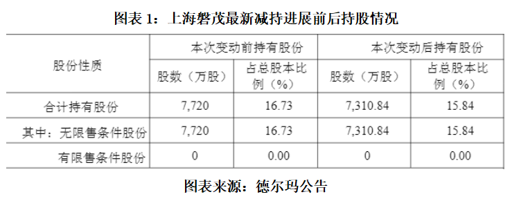 2025年半年报显露,上海磐茂是德尔玛第二大股东,合手有该公司18.96%的股权。而最新的减合手进展公告显露,资历以前两个半月的减合手后,上海磐茂在德尔玛的合手股比例已降至15.84%。阐明此前的预裸露公告,上海磐茂的减合手蓄意尚未履行结束。