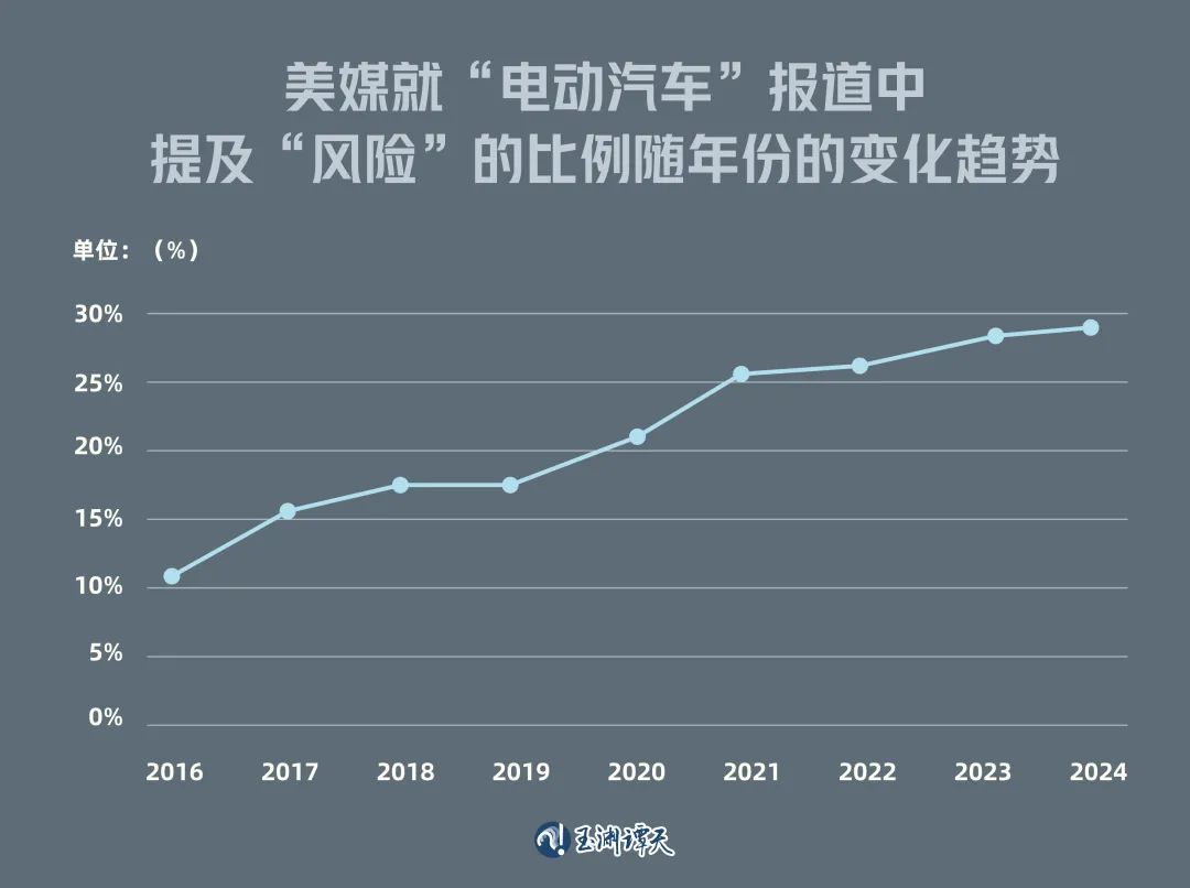 应用大数据技能,谭主对2016年于今好意思国媒体对于电动汽车的报谈进行分析后发现,“风险”一词的比重,在不息飞腾。