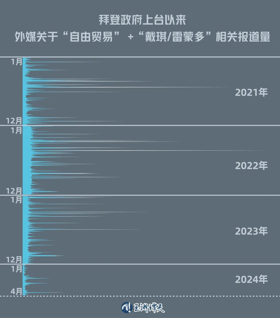 好意思国政客为何谈“公谈”不谈“目田买卖”?从图上不错看到,2022年以来,“目田买卖”这个表述出现的频率开动着落。以这一年为视角进行分析,咱们也能明白,什么是好意思国政客分解的“公谈”。